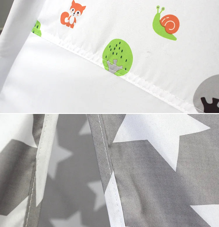 Sa toile douce imprimée et sa structure en bois offrent un espace de jeu sécurisé et élégant.